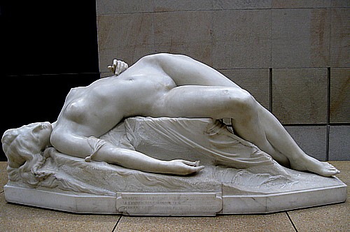 Of course, taking along a camera saves time and lessens the inconvenience, especially inasmuch as most museums do not restrict existing light photography (no flash). This would be terrible advice with regard to paintings, but most museum sculptures are ideally lit for photography from several (but seldom all) angles. The model doesn't move and the artist can go back to his or her studio with dozens of possible source im-ages, from which to choose only the best to print and paint. Moreover, in the case of some of the largest museums, the "models" available cover a very broad range of sub-ject matter content from mythological nudes to portrait busts, children, the old, the young, the extremely beautiful to the downright ugly. As a sculptor of the human figure in all its Victorian manifestations, Jean-Baptiste Car-peaux (right) is among the best the Orsay Museum in Paris has to offer.