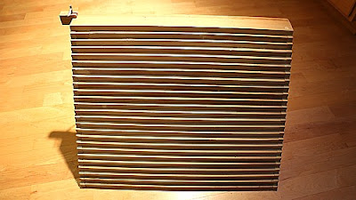 If all of this seems to "heavy" for our artist's minds, there are shortcuts in the form of domino kits on the market (Domino Rally and Domino Express, above) ranging in price from $19 to $25 containing up to ninety pieces including items similar or identical to some of the accessories seen in these videos. Speaking of money, the "dominos" (really just blank tiles usually made of wood or plastic), come at a cost of around $75 per thousand for multi-colored plastic to a mere $30 per thousand for the standard black variety made of wood. More exotic items such as plastic tiles of a single color (virtually any color) cost around $14 per hundred. It might also surprise you (it did me) that competition dominos come in five sizes as seen at left. Also, if you plan to indulge in Domino Art, be aware that one of the most vital items in your "art bin" are what's known as a "fall walls" (bottom). They are simply a breaker in-stalled at various intervals along the line during setup as a means to limit any damage due to an accidental triggering of a premature presentation of your art work.
