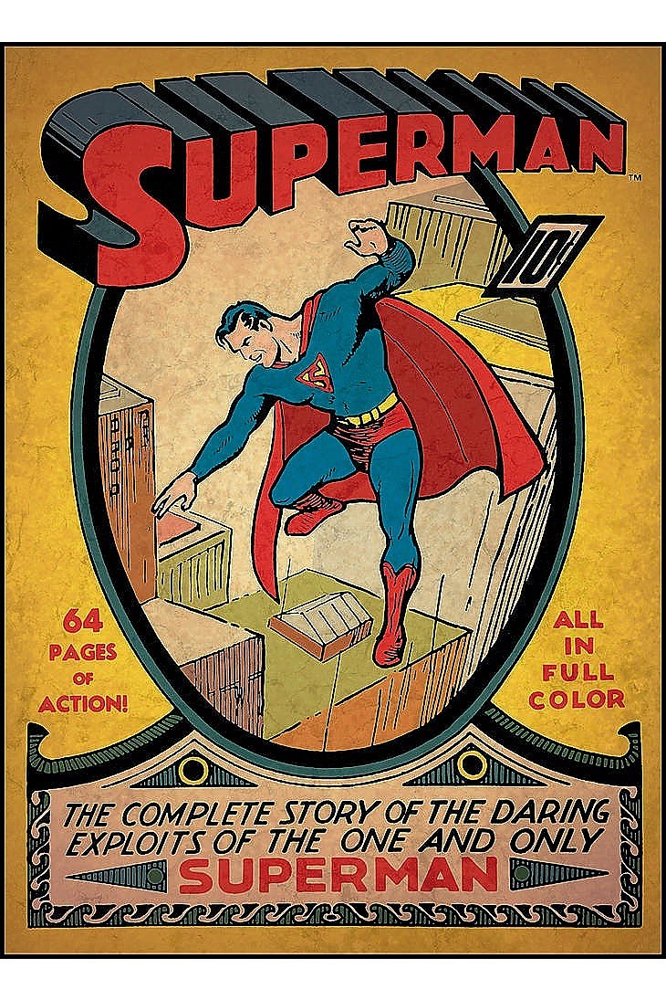 The "new" Superman they modeled after Douglas Fairbanks Jr. while Superman's alter ego, Clark Kent, was a composite name derived from movie actors Clark Gable and Kent Taylor. The creative pair originally intended their Superman to be a daily comic strip. They offered it to two publishers, both of whom turned it down. Then, they worked out a deal with a new company, called Action Comics, who wanted to use the superhero in a comic "book." Siegel and Shuster were asked to reformat their work to eight panels per page. However the pair ignored the request, laying out each two-page spread to suit themselves and the story line. They thus evolved a freedom of expression new to comic art. Action Comics No. 1 (left) debuted in June, 1938. A year later, Superman got his own comic book series (below, right).