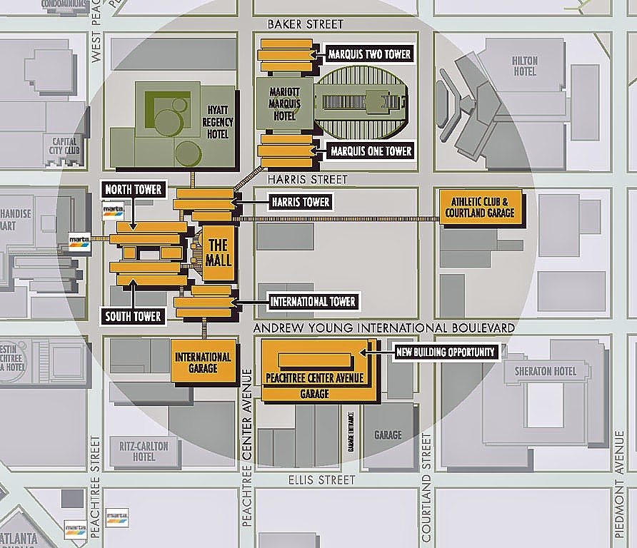 | Atlanta's Peachtree Center complex. |