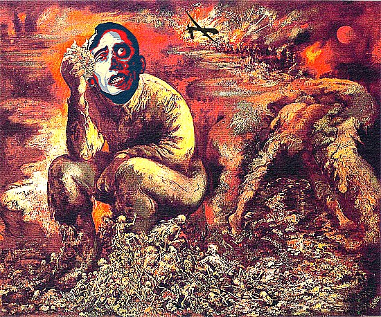 Anti-war art did not start during the late 1930s with the looming threat of a second world war. It began in the aftermath of the first world war with the Dada movement, though it was then so broadly anti-art, anti-establishment, and anti-traditional that its anti-war sentiments nearly became lost due to its lack of focus. However, with the rise of Hitler in Germany and other regional dictators itching for revenge from the harsh terms imposed upon them by the Treaty of Versailles, there's nothing like the looming shadow of yet another even broader, much more devastating, conflict to hone ones historical concentration. Virtually all the European anti-war artists, though not necessarily